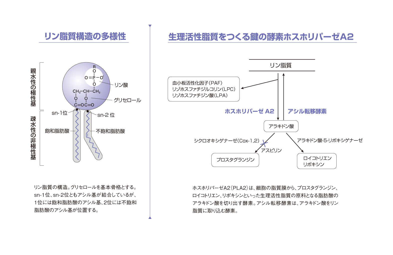 審良 受容体の研究と並行して清水先生は、脂質膜から生理活性脂質の原料となる脂肪酸を切り出す酵素にも興味をもたれたのですよね。ホスホリパーゼA2という。
